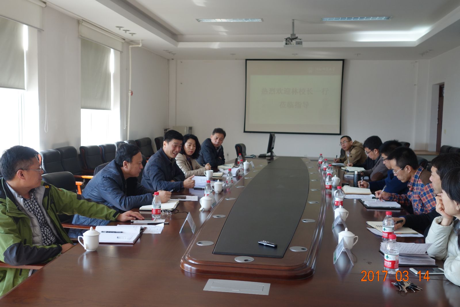 3月14日上午,校长林群,校务办公室主任杨杰,人事处处长韩国海,教务处处长刘天华,学科与科研工作处处长邵永运一行5人到yl23411永利集团官网调研指导工作。yl23411永利集团官网领导班子、系主任参加了调研会。