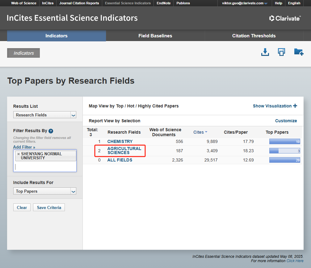 据科睿唯安20255月公布的最新基本科学指标数据库(Essential Science Indicators,简称ESI)统计数据,我校农业科学学科首次进入ESI全球排名前1%,这是继去年我校化学学科进入ESI全球排名前1%后,学科建设取得的又一新突破。