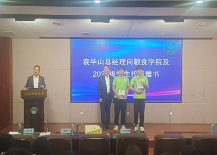 为帮助学生树立正确的粮食安全观,倡导节粮爱粮风尚,923日,yl23411永利集团官网特邀中储粮江苏质检中心有限公司 (中储粮华东区质检技术中心)总经理,正高级经济师袁华山在校图书馆学术报告厅,为我院2024级全体本科生作《中国粮食发展的历程及启示》专题报告。袁华山总经理从政策变迁讲起,为同学们详细阐述了土地革命时期、红军长征时期、抗日战争时期、解放战争时期的政策变迁过程,分析了我国粮食安全面临的现状,提倡推进全链条节约减损,践行践行大食物观,保障粮食安全。报告后,袁华山总经理将其撰写的《党领导下百年粮食发展的启示---基于质量管控的粮食安全问题研究》一书赠送给了我院同学。