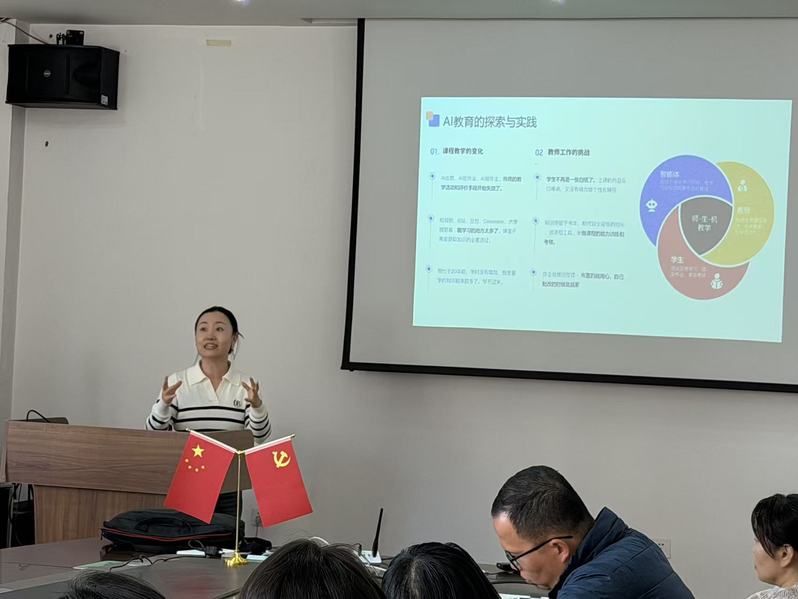培训会特邀国内两大主流教学平台——智慧树与学堂在线的资深专家进行专题分享。智慧树AI项目经理赵宁首先带来题为《AI赋能教学——智能体课程建设》的报告。她聚焦于“智能体课程”这一前沿概念,通过生动案例展示了AI技术在教学场景中的具体应用,为参会教师提供了从设计到实践的全流程解决方案。